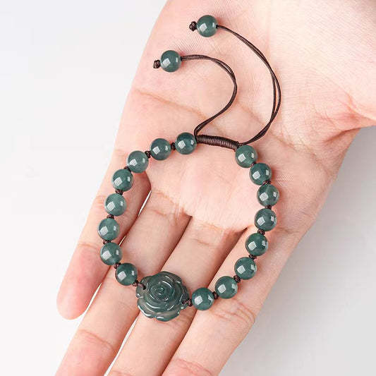 Authentic Icy Green Jade Rose Bracelet Handcrafted Flower Blossom Charm
