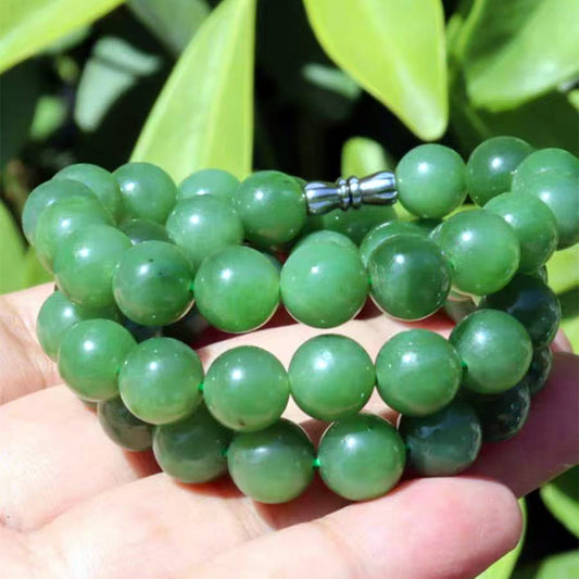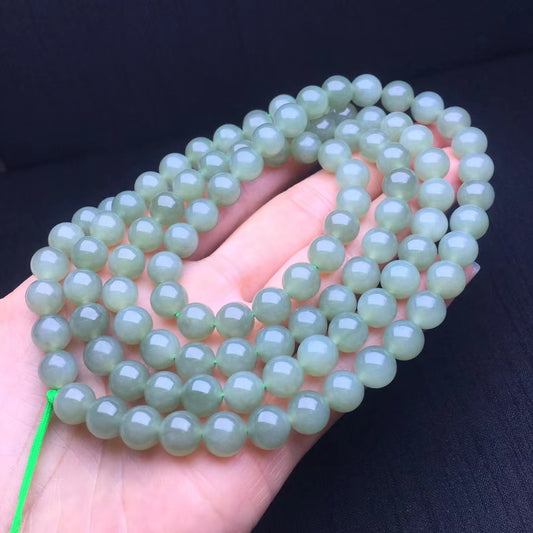 8mm Beads Certified Natural Hetian Jade Qinghai Green Nephrite Necklace
