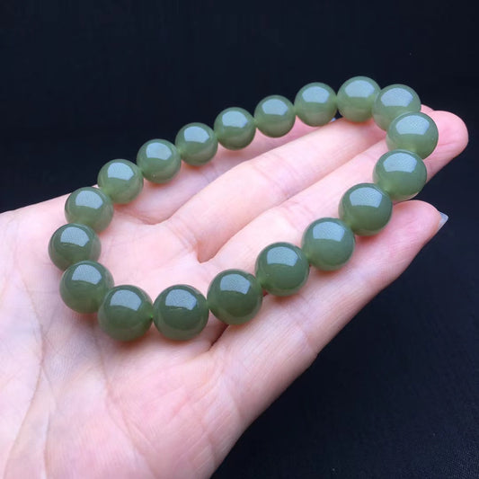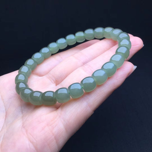 8mm Nephrite Natural Hetian Green (Qingshui) Barrel Jade Beads Bracelet